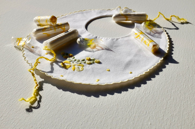 Fried Egg, 2019, object, tampon, bib