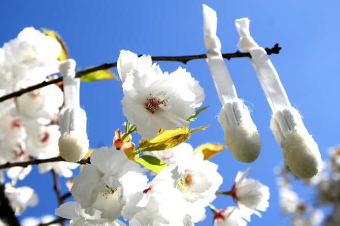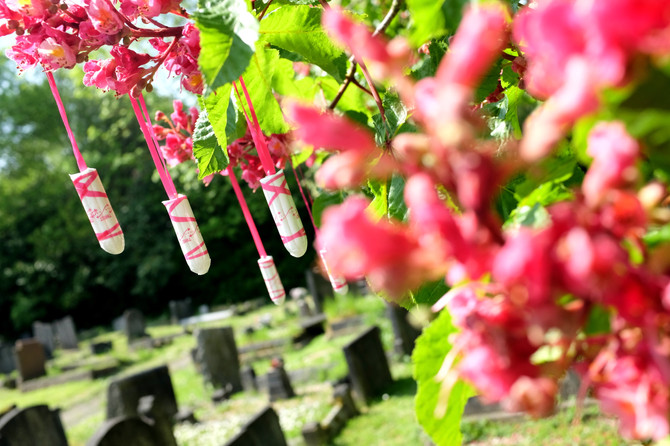 Pupa (Leap Year), 2016, tampon installation, Camberwell Old Cemetery
