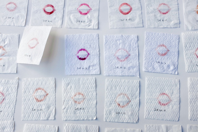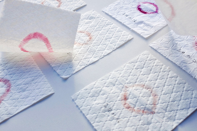 Kiss My Ass!, 2018 – 2020, toilet paper, lipstick, date