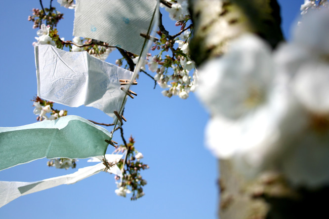 Nectar, 2015, toilet paper installation, Brenchley Gardens